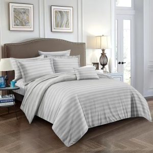 Το Μεγάλο Παζάρι Σετ σεντόνια Υπέρδιπλα Ριγέ Με Λάστιχο Γκρί 220Χ240 (TMP-3627)
