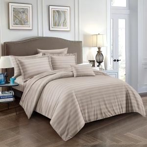 Το Μεγάλο Παζάρι Σετ σεντόνια Υπέρδιπλα Ριγέ Με Λάστιχο Μόκα 220Χ240 (TMP-3625)