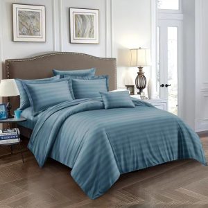 Το Μεγάλο Παζάρι Σετ σεντόνια Υπέρδιπλα Ριγέ Με Λάστιχο Σιέλ 220Χ240 (TMP-3629)