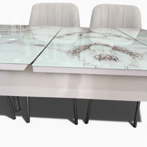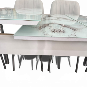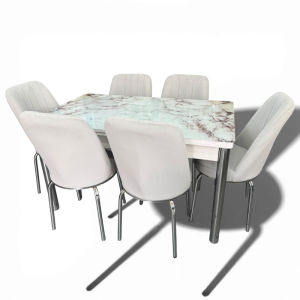 Σετ Τραπεζαρία 6 Καρέκλες Βελούδινες+1 Τραπέζι Με Τζάμι Πτυσσόμενο 170X80X77 Μάρμαρο Γκρί Του Πάγου (TMP-4857)