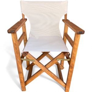 Καρέκλα ξύλινη σκηνοθέτη με πανί διάτρητο textiline για να μην ιδρώνεται,κατασκευασμένη από ανθεκτικό ξύλο οξιάς εμποτισμένο.
