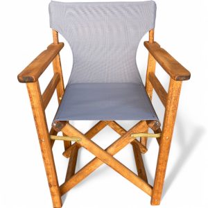 Καρέκλα ξύλινη σκηνοθέτη με πανί διάτρητο textiline για να μην ιδρώνεται,κατασκευασμένη από ανθεκτικό ξύλο οξιάς εμποτισμένο.