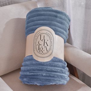 Το Μεγάλο Παζάρι Κουβέρτα Μονή 160×240 Super soft Βελουτέ Ριγέ Γαλάζιο (TMP-3547)