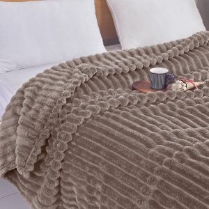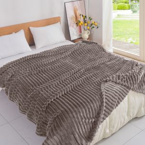 Το Μεγάλο Παζάρι Κουβέρτα Μονή 160×240 Super soft Βελουτέ Ριγέ Μόκα (TMP-3548)
