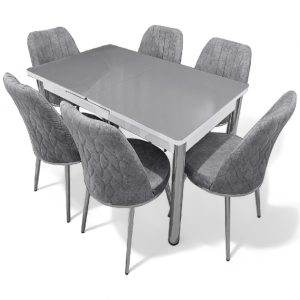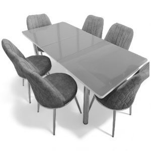 διαθέτει 6 καρέκλες με ύφασμα βελούδινο που καθαρίζεται
